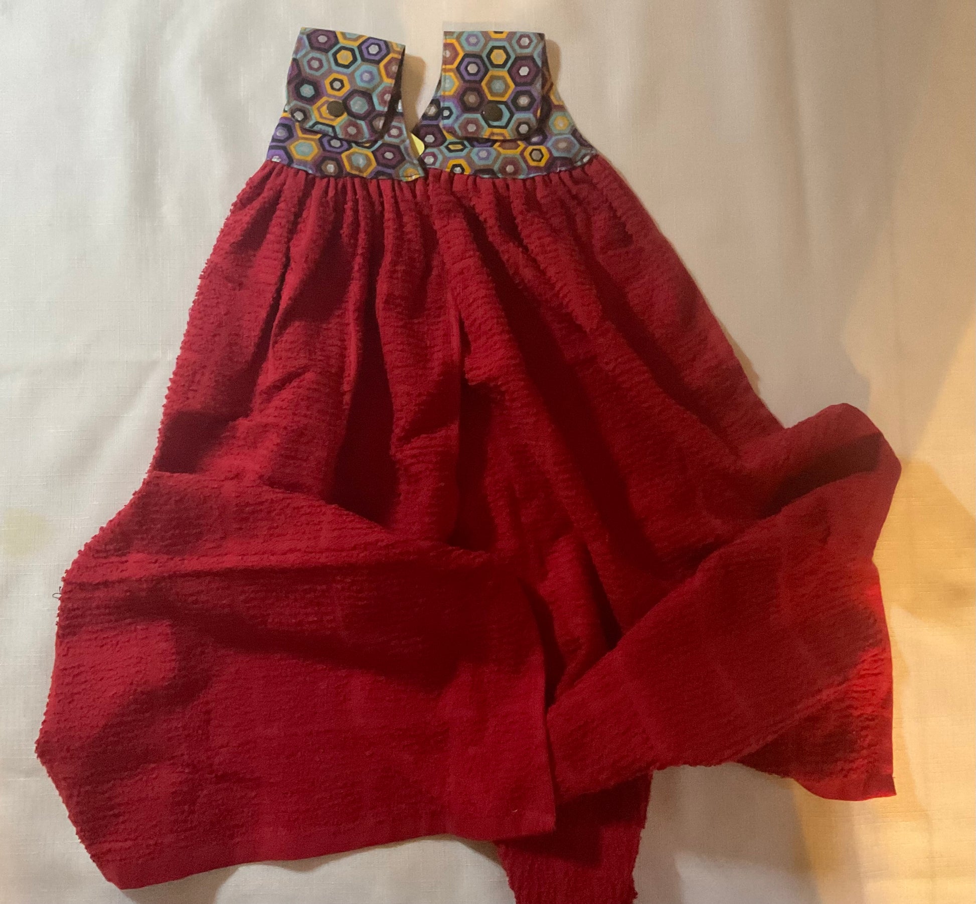 Cotton Hanging Tea Towels with snaps. These tea towels can be placed anywhere and snapped into place so you can always find them in the kitchen. Hang them on the oven handle, refrigerator or anywhere in your kitchen.